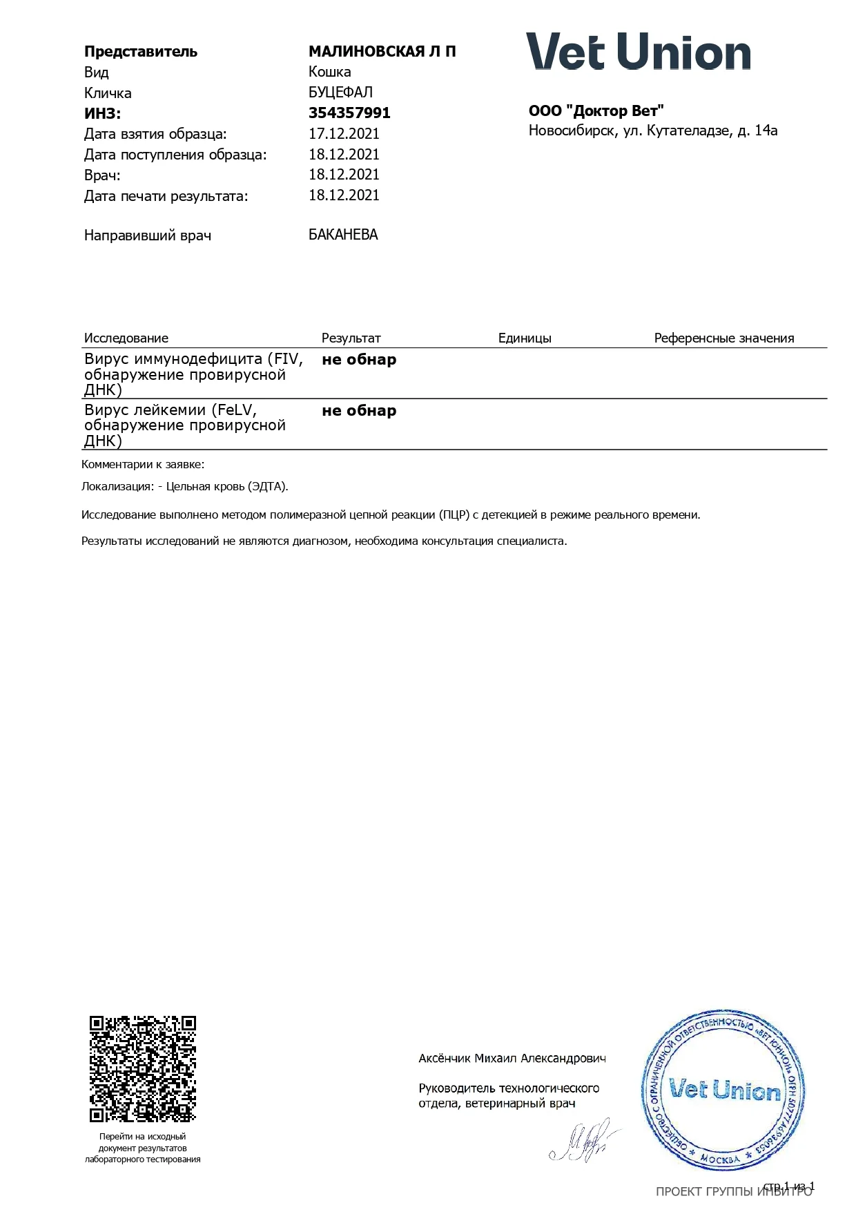 FIV/FelV: negative (2023)