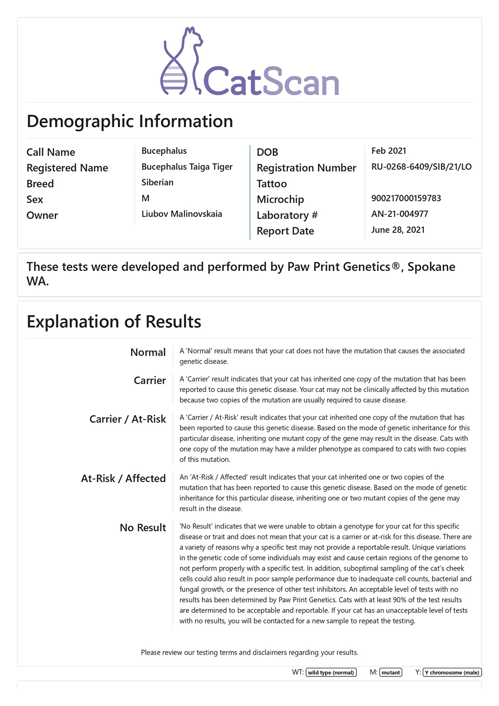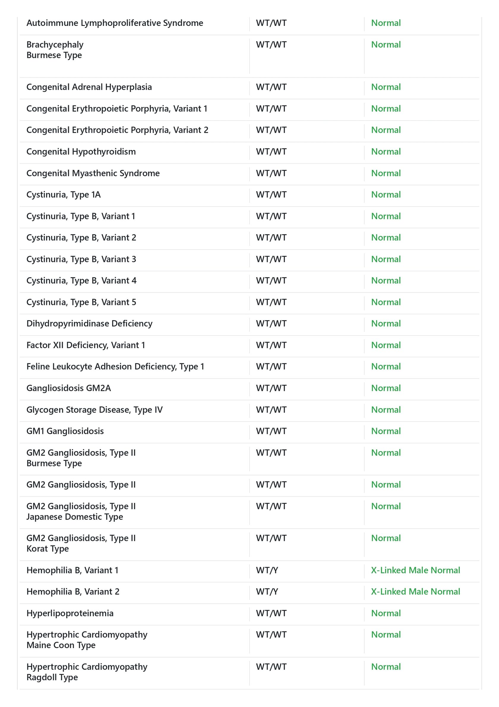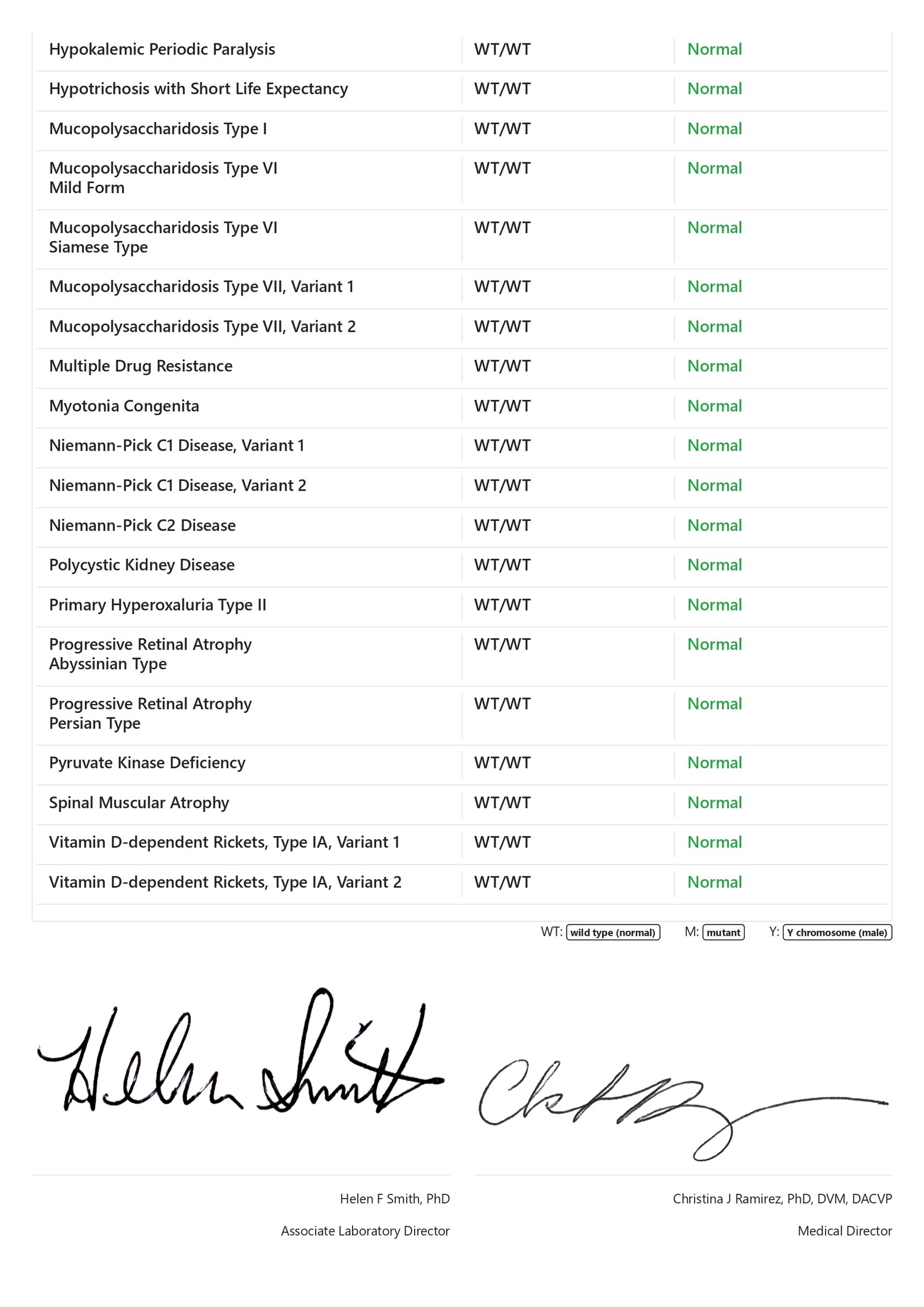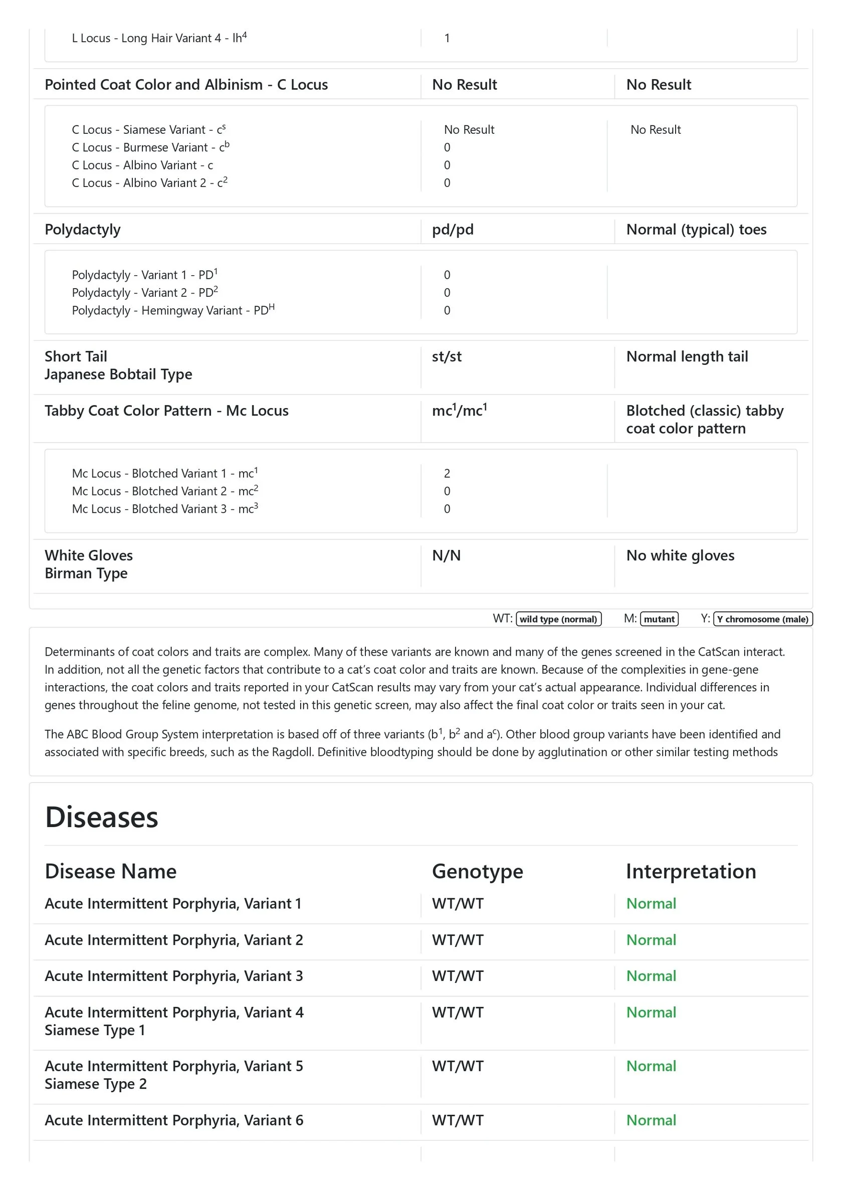 Genetic diseases (MyCatScan panel): negative